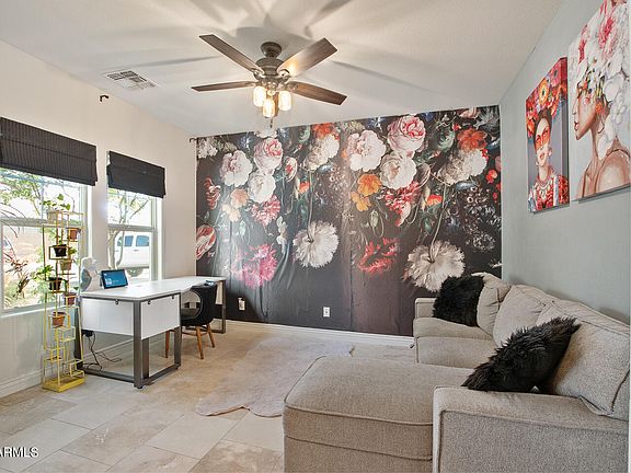 Welcome Home! This 5 bedroom, 4 bath home with a den and oversized loft is the one! This open concept floorplan will not disappoint. Downstairs you will find the Den/Office, Bedroom and the Primary Ensuite. The Kitchen features Epoxied Granite counters, Travertine mosaic backsplash & recently upgraded appliances. This home has Travertine Flooring in main areas and LVP flooring throughout the Bedrooms & 2nd floor. Upstairs there is an oversized loft, and three more large bedrooms. The Resort Style Backyard is complete with a large covered patio, travertine hardscape, artificial turf a Pebble Sheen pool, Wood Pergola & 3 grills. This home also features an RV gate and Solar. There is a large portion of furniture that will also be available for purchase. Please see Private Remarks.