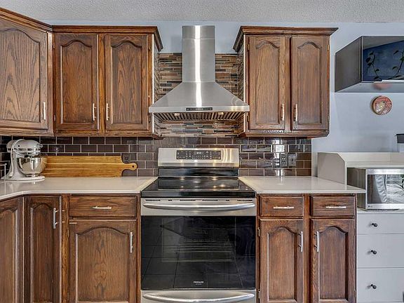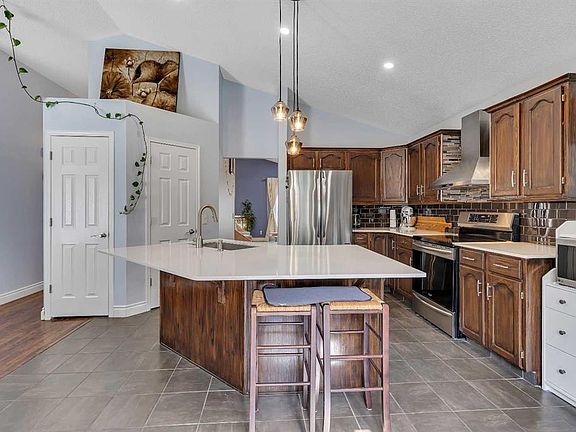 Fully finished bi-levelVaulted ceilingsLarge windowsElegant wrought-iron railingsUpdated kitchenRich wood cabinetryStainless steel appliances