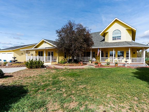 Spectacular Powell Butte home and property! Spacious two-story house with quality evident throughout. Open greatroom with vaulted ceilings leads to covered patio overlooking back terrain, with trails leading to the creek. Master suite is on the main level, with three additional bedrooms upstairs and huge bonus room with private bathroom down. Covering almost 11 acres, with 5.9. irrigated. 3 separate insulated & drywalled garages with 7 spaces. Paved, circular driveway leads to charming & tranquil country living with pasture, creek, pond, and beautiful vista views. Perfect location in a private setting. This is the one you've waited for!