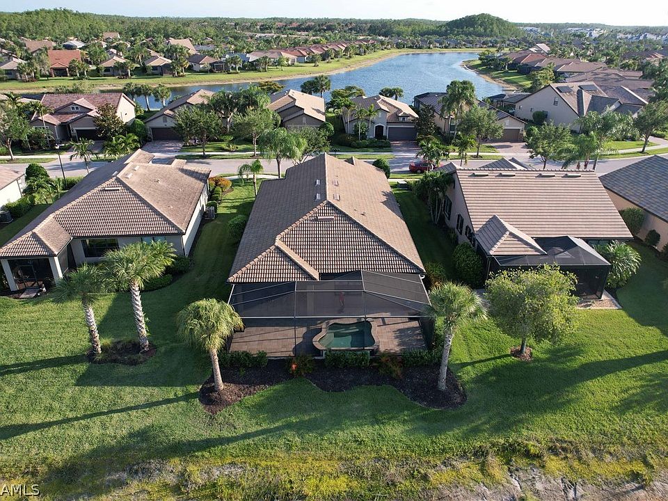 This IMMACULATE home features WATER VIEWS! Interior features include beautiful tile flooring, quartz countertops and contemporary soft close cabinets, and a well laid out kitchen with island and formal dining for entertaining. Sit in your screened lanai and enjoy the beautiful serene water, sunny SW Florida weather and beautiful sunsets while soaking in the spa. Recent updates include a screened front enclosed entry, washer and dryer and water heater. Come and see this affordable home!!