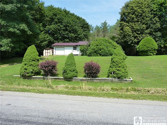 Welcome to 10914 Jamestown Road!! This 3 bedroom, 1 bath country ranch home is situated on over 2 acres. Entering the front door is an enclosed carpeted porch area which leads to the living room with hardwood floors. To the right are 3 bedrooms with closets and a full bathroom with tile flooring and a walk in shower. To the left is an open dining area with a large kitchen. The one car attached garage has 2 doorways, one into the kitchen and the other to the backyard. There is also a large shed with electrical service next to the garage. The home has a metal roof and updated HVAC located in the full basement area. Property has a well and a septic. The home and the yard are well maintained with a wooded setting in the rear of the property. Close to Salamanca, Ellicottville and Jamestown attractions. Check out this wonderful property today!!!