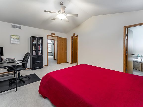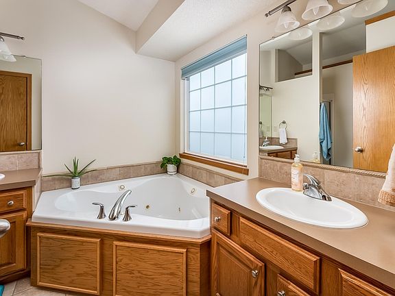 Spectacular, clean and well maintained home in the northern part of Evergreen Addition. This 5 BR and 3 BA home features all new stainless steel appliances in kitchen. Seller has also installed new carpet in entire home along with new paint in every room. Other updates include new blinds and shades and some plumbing fixtures. Main floor extras include Real hardwood floors, a 3 way gas fireplace, whirlpool tub in the master. This home checks all the boxes with a full finished walkout basement with two additional Bedrooms and bathroom and a large Rec room with another gas fireplace. The large backyard has a privacy fence and is a perfect setting for the covered back porch. The small shed transfers and the landscaping is easy with a irrigation well and sprinkler system. Walking distance to New Market Square restaurants and shopping.....Multiple offers have been received. Highest and best offers are due by 2pm 2-10-2022