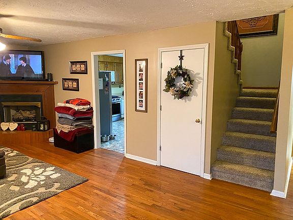 MOTIVATED SELLER. Three (possibly 4) bedroom home with ample space for everyone in the family. MAIN LEVEL has spacious living room with hardwood floors and gas log fireplace / kitchen has lots of counter and cabinet space / master bedroom, second bedroom and full bath. UPSTAIRS is a third bedroom, full bath and spacious family room which could easily be converted to a fourth bedroom. Both upstairs rooms have walk-in closets. Front porch and back deck offer amazing views of pasture land and endless blue skies. The 3 car garage has power plus a covered outside area for your lawn mower. A large covered structure in the backyard offers lots of possibilities. Country living, lots of outdoor space and only 2 neighbors.