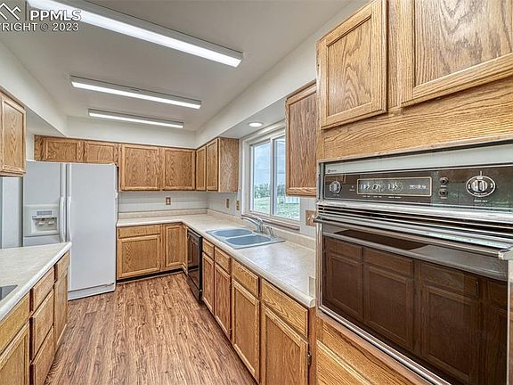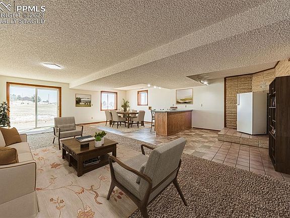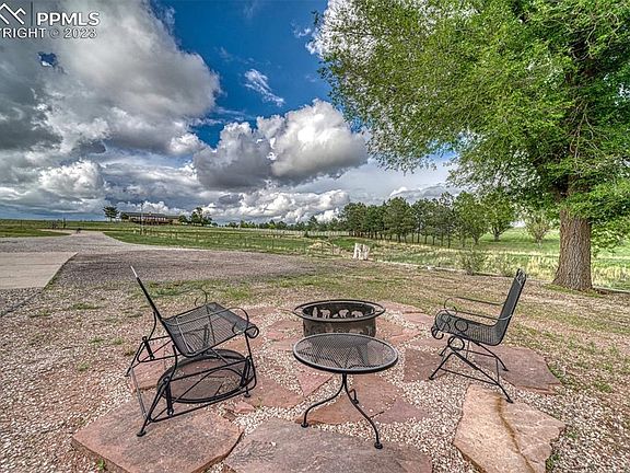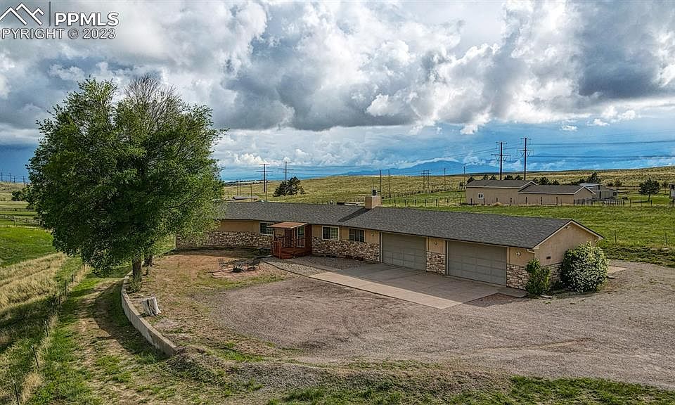 Spectacular horse property close to town just minutes to Peterson AFB and very close to all the Falcon shopping. You'll really appreciate the pristine way this lovely home has been cared for. This is a true main level living ranch with an abundance of places to relax including two huge family rooms on the main level, with spacious main level bedrooms plus two more large bedrooms in the walkout basement that has a massive game room, plenty of added storage plus a large wet bar. The large kitchen is just off the formal dining room and a massive pantry that any chef would adore. There are two living rooms on the main level and one massive entertaining room in the basement - perfect for all the family to spread out. There is an enclosed breezeway to walk from the massive 4 car garage into the home or out to the back yard. The finished dream garage measures 45 feet by 24 feet, plenty of room for any huge truck and lots of other toys. The large 4-legged family members will be spoiled at this home that has a massive metal, well insulated barn complete with water and power as well as the nearby warming loafing shed and plenty of pasture with fencing and cross fencing for the animals to graze. The high flow domestic well system is extraordinary with its own separate huge cistern plus and abundance of water storage space. This beautifully maintained home has fresh carpet and paint and is a certified pre-owned home.