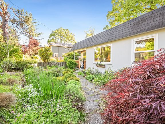 This adorable 1930s cottage is nestled in a magical woodland setting, surrounded by mature trees, native gardens, and habitat. Your own urban retreat, with the perfect blend of vintage charm and updates! Original hardwood floors, updated windows, newer roof, fresh paint inside and out, and a new heat pump for efficient heating and cooling. The layout is ideal, maximizing the use of space, with the added bonus of an attached workshop for all of your projects and gear. Enjoy morning coffee on the sweetest front porch, and summer evenings on the back deck while you take in your serene outdoor oasis. All of this just minutes from nearby shopping, restaurants, and transit. OPEN HOUSES: Saturday 5/11 & Sunday 5/12 1:00pm-3:00pm. [Home Energy Score = 8. HES Report at https://rpt.greenbuildingregistry.com/hes/OR10035780]