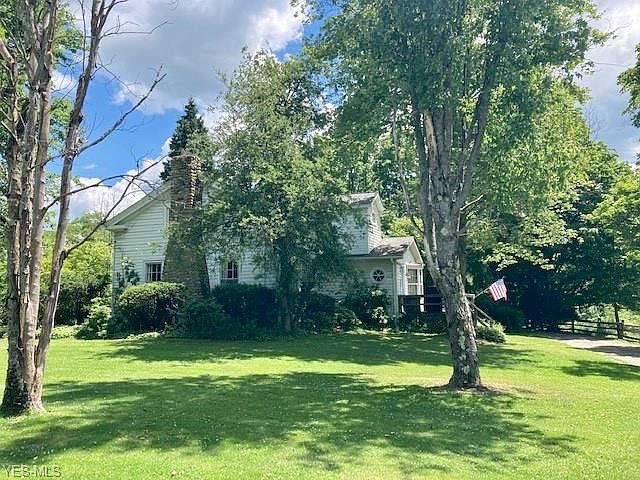 Lovingly restored Munson Twp Century Home! 3 bedroom (1 is tandem - could be 4) and 2.5 updated baths. Stroll up onto the Veranda and view the expansive lawn. Enter into a foyer which leads to a first floor suite with walk in shower or take in the wood beamed family room with a brick wall fireplace. Floor to ceiling bay window brings in the lush outdoors. The Center Hall is flanked by a large dining room, and a living room that details a beautiful fireplace trimmed with stone quarried from the land, built ins and beautiful molding throughout. The doors retain their original hasp and pulls. Updated eat in kitchen with center island and beautiful gray toned granite countertops. A large bay window overlooks the deck, or head out through the mudroom to sit for awhile.Upstairs you will find a full bath with walk in shower and separate tub. A very large bedroom with room for a sitting area is a great place to end the day. Down the hall is the tandem bedroom. Basement serves as the laundry area, and has 2 walkups to the outdoors. This property leads to the Chagrin River, and the history is there was an old Mill there, and one of the round mill grinding stones now sits in the front yard. We think you'll agree this is a special property, and the likes of these do not come up for sale too often. Installation of new Septic System has been completed and approved by GCHD! Don't miss out, call today to schedule your appointment!