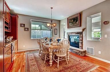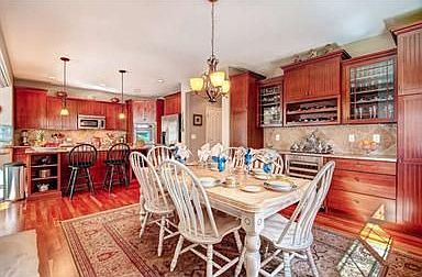 Amazing kitchen with cherry floors, cherry cabinets, roller shelves in cabinets, slab granite counters and island, stainless appliances, double ovens, 4 burner gas cooktop, wine cooler and Terrazzo tile backsplash. Cherry floors in entry and dining room, two-sided fireplace between dining room and living room. Guest bedroom on main floor with bath. Master suite has huge walk-in California Closet and Terrazzo tile and dual shower heads in bath. Jack and Jill bathroom between upper bedrooms, 2nd floor laundry room front load washer/dryer included! All windows have Duet Day/Night Shades. Security System. Natural gas line extends to Trex Deck for outdoor grilling. Professionally landscaped. Large unfinished basement w/ 9ft ceilings. Double furnace/AC/whole house humidifier. 3-car garage with finished walls and epoxy floor. Lawn treatment company has been prepaid for 2013 summer season.