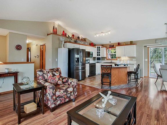 Immaculate one owner home on lake lot. Knock you socks off kitchen fully applianced with black stainless appliances. Kitchen features island and eating bar. Tv in kitchen to remain. Outstanding decor throughout, very open plan with lots of natural light. Sliding glass doors off dining open to an extra large covered deck with hot tub. Fire pit in the outdoor entertainment area built in 2019 overlooks lake. Storage building completes you scenic backyard. Full finished basement with 2 bedrooms and a full bath. Family room with gas fireplace and daylight windows. Basement has a dry bar with fridge. Don't miss this rare opportunity to buy a fully updated one owner ranch. Hurry this will sell fast!