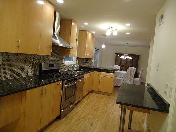 Large living room. Newly renovated eat-in kitchen with all new 42 in cabinets, self closing drawers, breakfast nook, gas stove, granite countertops, recessed lights, opened to separate dining room. Hardwood floors throughout. All bathrooms renovated. Large recreation room with fireplace. Sunroom with vaulted ceiling, ceiling fan, and first floor laundry. Sun Room walks out to large Patio in back. Large Master bedroom on first floor with renovated full bath and walk-in closet. This suite can also be used as an in-law suite. Upstairs has 4 bedrooms and 2 full bathrooms. Second Master Suite upstairs. New stainless steel appliances. 1200 ft Extra Large and Full unfinished basement with half bathroom and walk-out to walk-up. All new windows. Seven year old roof. Gas heat. Forced air A/C. Just painted inside and outside. Will honor real estate agents with 2.5-3% commission.