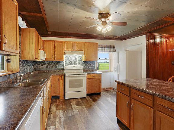 This 3-4 bedroom house features a remodeled kitchen, new carpet, first floor laundry, a recently extended deck overlooking the clean 2 acres of land, 2+ car detached garage with new metal doors, and a 28x42x12 pole building with cement flooring. The additional living room area on the main floor offers plenty more space and options. The bedroom on the main floor also currently houses the washer and dryer. The metal roof has been well maintained, the well/septic system was put in 6 years ago, was tested tested last fall and was approved.
