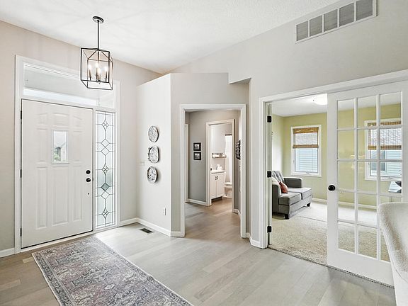 Multiple Offers! Please submit best and honest by 3p today (7/10) Welcome to this meticulously cared-for 3BR, 2BA ranch in the desirable Pine Valley subdivision! Nestled on a quiet cul-de-sac, this home features upgraded engineered hardwood flooring, new ceiling fans, and fresh landscaping for great curb appeal as well as backyard tranquility. The owners suite features trayed ceilings and an en suite bathroom with double vanity mirrors, a large garden tub, and stand up shower. The 2nd bedroom is perfect for a bedroom or an office with double opening french doors. The main bathroom separates this room from the 3rd bedroom located at the front of the home. The living room is equiped with a beautiful brick fireplace and plenty of room for relaxing or entertaining. Let the dining room invite you into the spacious kitchen that leads you to the laundry room and garage. Enjoy the peaceful 3-seasons room overlooking a spacious fenced backyard and patio. Located just minutes from golf course, major hospitals, shopping, and dining, this home offers both comfort and convenience in a prime location.