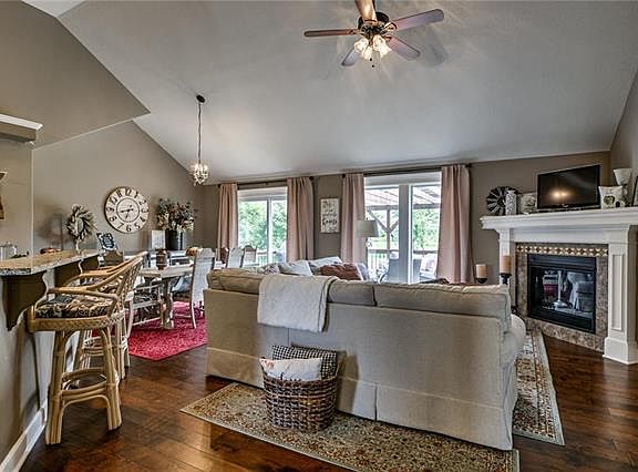 Beautifully landscaped 4 bedroom home in Liberty public school district! Walk in & feel the spacious vaulted ceiling! Kitchen boasts granite countertops, stainless steel appliances & pantry! Hardwood floors throughout main living space! Relax outside on your deck w/pergola overlooking HUGE back yard! Master bedroom features his/her closets with one being a large walk-in! Guest bedrooms have walk-in closets too! Add'l bonus space in garage makes great workout area or provides extra storage!