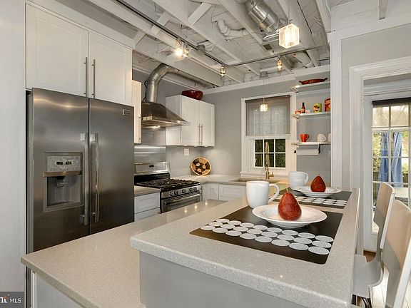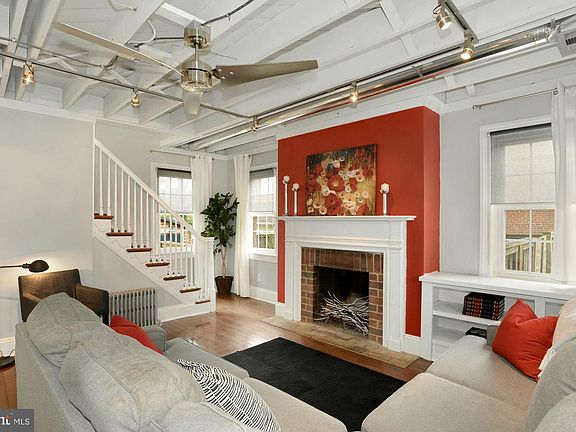 Urban Flair in Charming Old Town Fairfax! Behind the charming full brick exterior, an updated vision greets all who enter! Amazement starts at the top of the Great Room with the soaring open joist ceiling featuring minimalist industrial lighting casting a warm glow on the hardwood flooring. Cool breezes from the aviator style ceiling fan juxtapose the coziness of the masonry wood burning fireplace flanked by builtin shelving. Overlooking all is the updated urbanesque Kitchen featuring a Frigidaire Professional appliance package including gas range with commercial exterior vented hood, sidebyside fridge, & built-in microwave. Stone counters envelope all including extra deep double sink with coiled gooseneck faucet and window view of backyard. Designer touches include onpoint Shaker cabinets, brushed stainless hardware, open stainless shelving & backsplash, & track lighting! Bistro height island provides architectural separation, extra work & storage space, and welcomes casual dining! Quality built-in cabinetry in Dining Area offers even more storage & visual interest.~~ Upstairs you'll find the newly updated Full Bath featuring all new fixtures including new tub/shower combo with rain showerhead; Shaker style vanity with cabinet storage, shiny white top, bright chrome accents PLUS designer inspired shiplap walls, industrial sconces, & slate floor. Mirrored landing with linen closet & track lighting. Two Bedrooms each with ceiling fans and hardwood flooring complete the upper level including large Bedroom #1 featuring additional builtin bookcase/ shelving and three windows for cross ventilation and more natural light! ~~ Multipurpose Lower Level offers you Full Bath #2 including a brand new shower; Laundry Area with stacked frontload washer & dryer + twin utility sink; generous storage alcove, more builtin shelving + workbench. ~~ And then there's the private, fenced Yard! Relax and unwind on the expansive deck with hot tub & new ultramodern railing, the pergola sheltered patio or the lushly landscaped greenspace. Hobby your heart away in the brand new Shed with full electric + workbench + shelving or garden in the tiered planter boxes! Please note newly installed Central Air Conditioning -- unique to the neighborhood! Newer boiler, windows, roof.