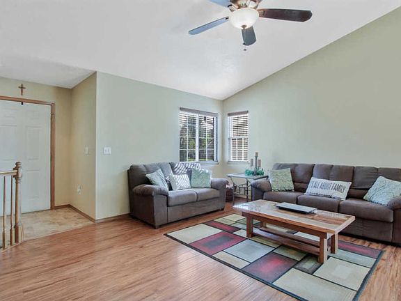 Very nice remolded home in West Wichita and Maize Schools. Open floor plan with fence backyard. New Roof as of July 2019. New Exterior paint and basement finish. Basement has a walk-up wet bar with GFP. All 3 baths have tile floors. Master bath has a corner soaker and shower. Master bedroom has an amazing walk-in closet lots of room. Main floor laundry. Kitchen, baths and bar feature the tumble title back splash with laminate counter tops. Home has knock down ceilings and ceiling fans in the bedrooms.
