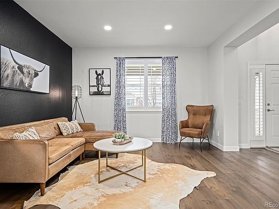 Beautiful updates surface throughout this home positioned backing to serene open space. Thoughtfully designed for entertaining, a spacious layout unfolds with modern finishes and abundant natural light. A front living room opens effortlessly into a formal dining area illuminated by a contemporary chandelier. Two-story ceilings expand the scale of a sun-drenched great room anchored by a statement fireplace wall. Enjoy crafting recipes in an eat-in kitchen with access to an expansive deck showcasing stunning views of DTC and open space. A main-floor bedroom and 3/4 bath add convenience for guests or multi-generational living. The sizable primary suite boasts a walk-in closet and a sliding barn door opening to a tranquil bath. Downstairs, a finished walkout basement hosts a rec room with a wet bar and a home gym. Retreat outdoors to a covered patio — the perfect setting to indulge in quiet moments of relaxation. Additional storage space is found in an attached 2-car garage.