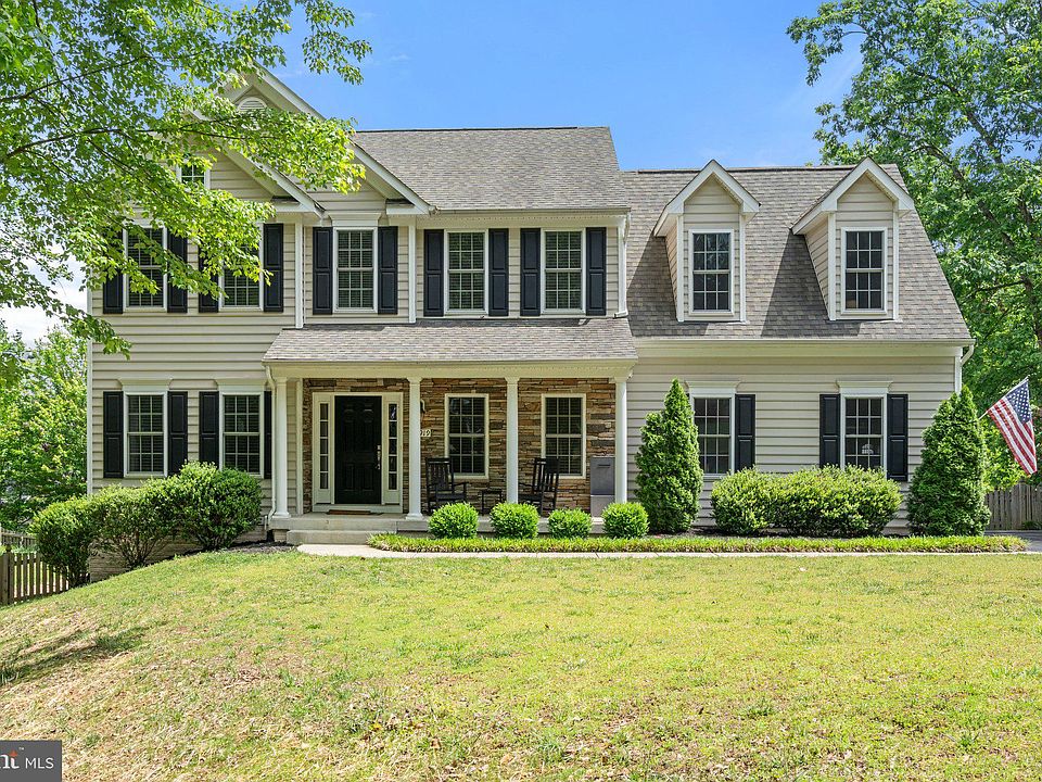 Welcome to 10919 Park Ridge Rd in the established Artillery Ridge community! This well-maintained home offers generous living spaces, thoughtful upgrades, and a private, park-like setting—perfectly balancing comfort and convenience. On the main level, you're greeted by a spacious foyer and warm hardwood floors throughout. A dedicated home office with French doors and crown molding provides an ideal work-from-home setup. The formal dining room exudes classic charm with chair rail and crown molding. At the heart of the home, the large eat-in kitchen features crisp white cabinetry, granite countertops, stainless steel appliances, and a breakfast bar—perfect for casual dining or entertaining. The kitchen opens to an inviting living room with a ceiling fan, hardwood floors, and a stunning stone fireplace for cozy evenings. Upstairs, the expansive primary suite impresses with vaulted ceilings, a walk-in closet, and a beautifully updated en-suite bath with granite counters and tile flooring. Four additional generously sized bedrooms offer large closets and share a well-appointed hall bath. A convenient second-floor laundry room adds everyday ease. The lower level provides incredible flexibility with a spacious finished great room, a full bath, and two large unfinished storage areas—ideal for hobbies, a home gym, or future customization. It also features a wet bar with granite countertops and a walk-out basement design, creating the perfect space for entertaining or hosting guests. Outdoors, enjoy a fully fenced backyard, rear deck, and a covered front porch—all offering peaceful spaces to relax or entertain. A side-load two-car garage and paved driveway complete the exterior features. Location-wise, you’ll love being just minutes from shopping centers, restaurants, and entertainment. Daily commuting is a breeze with quick access to I-95, the Virginia Railway Express (VRE), and key routes throughout Northern Virginia. Parks and recreational amenities are also nearby, enhancing the lifestyle appeal. This home combines space, style, and location—schedule your private showing today!