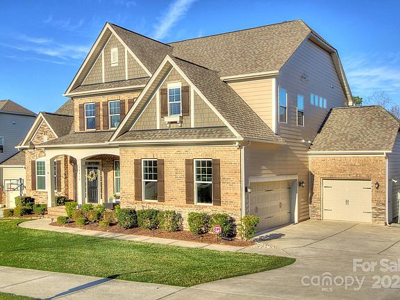 Welcome Home! Friends & family are welcomed w/ large rocking chair front porch. Imagine your morning cup of coffee on deck overlooking the private unobstructed natural view (no homes behind). Foyer provides inviting entrance w/ large home office/formal dining room. Bright kitchen overlooking expansive two story great room with 20' stacked stone fireplace. White, modern kitchen boasts large working island, 5 burner gas cooktop, wall oven/microwave. Breakfast area or sunroom off kitchen. Utility room provides space needed for a busy lifestyle w/ ample built ins & good storage. Primary suite w/ 14'8"x8 w/i closet on main level (dual vanity/sep shower/tub). Upstairs offers three additional bedrooms AND 14'8"x25'8" bed/bonus. Rooms are good size & the layout very functional. Loft provides additional gathering area. Sight finished wood floors on main level. Deck overlooks backyard 5.6 acre heavy treed natural area owned by HOA. New carpet in primary bdrm 2024. *SHOWINGS BEGIN FRIDAY, 2/23*
