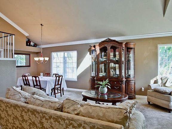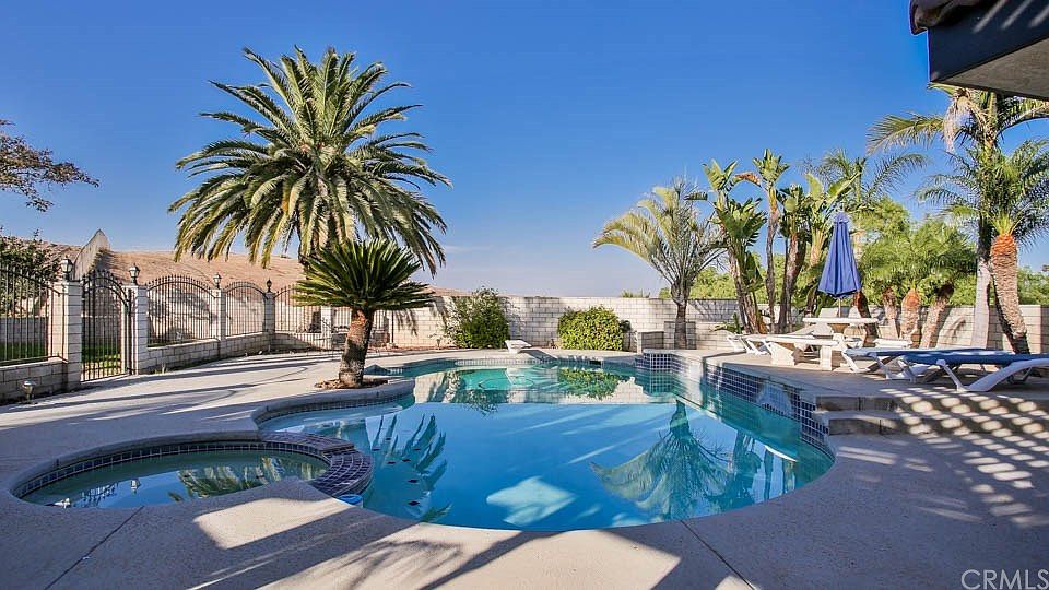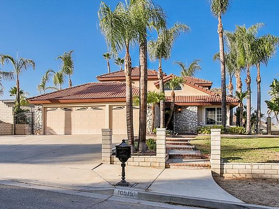 Beautiful pool home w/downstairs bedroom, RV parking & private backyard! 4 Bed., 3 Bath., 3 car garage. Step into this beautiful home w/high ceilings, tile flooring, raised base boards & crown molding throughout. This home features a formal living room & dining room, downstairs bedroom w/ full bath. All of the bathrooms feature beautiful granite counter tops, glass enclosed showers & beautiful tile inlay. The family room has a beautiful built in book case, brick fireplace & opens to the kitchen. The kitchen has granite counter tops, breakfast bar, stainless steel appliances including, trash compactor, dishwasher, built in microwave & fan & stove. Just off the kitchen is the dining room. The dry bar has a wine rack, granite counter, cabinets & stainless steel wine chiller. Head upstairs to the spacious master bedroom w/ceiling fan, high ceiling & large mirrored closet. The master bathroom features dual sinks, granite counters & glass enclosed shower & tub combo w/beautiful tile. All of the bedrooms feature ceiling fans & mirrored closets. The whole home has step lighting throughout (built in nightlights!). The home has a water softener & prufication system w/spiket outside to wash your car (no spots!). Private backyard w/NO neighbors behind you, RV w/cover, dog run, & shed. The side yard has a water fountain, outdoor bathroom, gated pool & spa w/BBQ, bar area, & storage for pool equipment. Home also has an alarm system w/lights & horns, new sprinkler system, new water heater.
