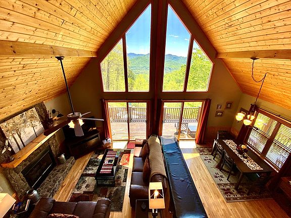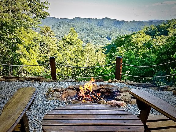 Stunning Long Range Mountain Views, Stone Fire Place, Paved access roads to the driveway, and less than 15 minutes from downtown Bryson City. Outside there is Multi Level Decking that is ideal for Relaxing in the Hot Tub, Dining Al-Fresco and/or Star Gazing while Gathering around the Fire-Pit. When Travelers are looking for a Cabin in the Mountains, this is what they all want. (Excellent Vacation Rental History).