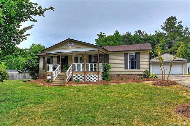 A great place to call home! First time buyers, empty nesters, and those looking for a little country retreat will love this adorable Ranch in Clover! Fabulous Yard can be viewed from the oversized front porch or from the rear covered deck. Laminate hardwoods throughout the Main Living areas and Master Bedroom. Divided floorplan offers privacy for the master bedroom and en-suite. Central family room is open to the dining room and kitchen. Side hallway extends to secondary bedrooms and additional full bath. Long flat driveway leads to detached two car garage. Loads of storage available inside garage and attached utility sheds. A portion of rear yard is fenced. New roof 2017. No HOA!