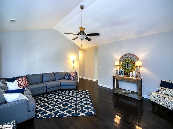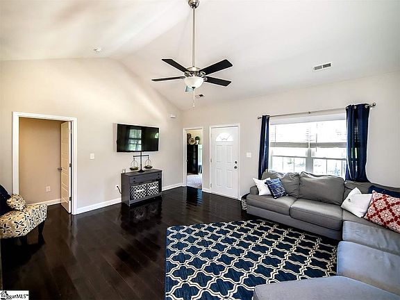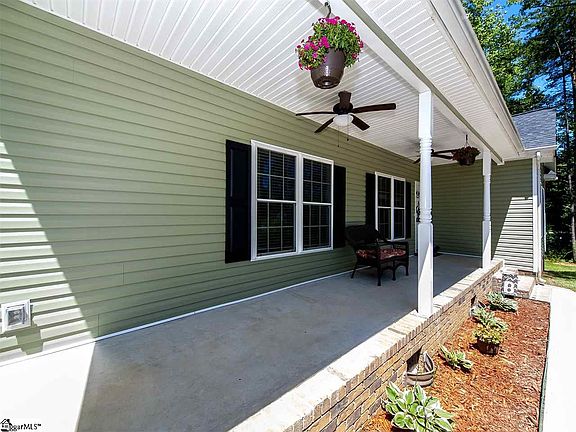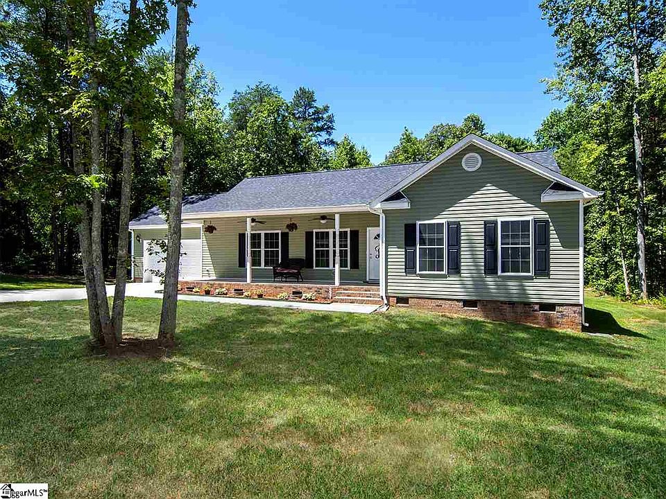 Barely lived in ranch on .96 acre lot just outside of Clover city limits. Private, wooded lot w/spacious floor plan. Covered front porch perfect for rocking chairs plus a screened in rear porch give you great outside areas to entertain and enjoy this beautiful setting. 5" wide hardwood floors, carpet & tile flooring. The vaulted GR is open to the kitchen and splits the BR layout. The Master Suite has a tray ceiling, large walk-in closet, double vanity & garden tub/shower. There is also a 2nd BR on this side of the home and the 3rd bedroom, hall bath & large walk-in storage closet on the opposite side. The kitchen has granite countertops, stainless appliances, a pantry & eat-in breakfast area that opens to the screened porch. Off the rear, garage entry hallway there is a 4th room/office/tv room that opens to the screen porch also. The walk-in laundry is located off this hallway as well. The flat yard is perfect for a pool or additional garage/shop.