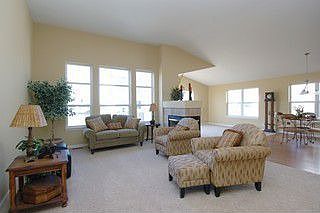 Brand new Riviera ranch plan is gorgeous and ready for occupancy! Includes full deep pour bsmnt, roughed in bath, luxury master bath, upgraded doors & trim, stainless steel appliance package, hardwood flooring in kitchen, ceramic flooring in master bath, upgraded hardware, and more! Two bedrooms + den, spacious great room with multi-sided fireplace. Open kitchen allows for easy entertaining. The time to buy is now!