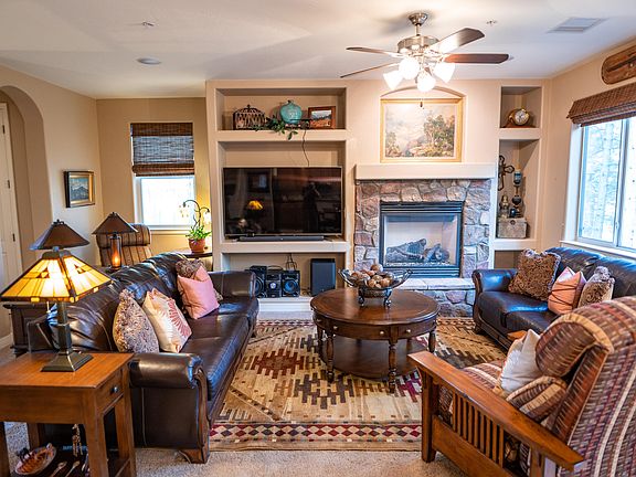 This luxury townhome BACKS NATIONAL FOREST and borders HOA green space. By far the biggest and BEST lot in the community! Pride of ownership is evident in this beautifully laid out home. From the open concept in the living room and kitchen, to the balcony high up in the trees - this home has been lovingly cared for and is in ''like new'' condition. In addition to the three spacious bedrooms there is a large bonus room. Stay cool in the summers with the air conditioning and cozy up to one of the TWO fire places in during the cooler months. Outside you'll enjoy relaxing on the paver patio with gas fire pit in the tall Ponderosa Pines. Additional upgrades include: wired for surround sound, granite, Samsung stainless steel appliances, security, surround sound 10 ft ceilings, 8ft doors...