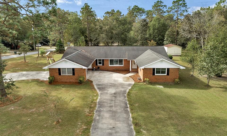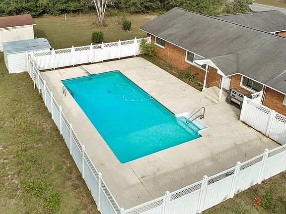 This brick home sits in quiet, low-key neighborhood. With the included lot behind the home, there is plenty of room to spread out on this 1.19 acres. There is an in-ground saltwater pool enclosed with a privacy fence. Grapes and persimmon and pear trees are growing well here. The home offers 4 bedrooms and 3 baths. There is a carport and two extra out buildings for storage, one has power. Inside you will find beautiful teak vinyl floorings throughout the home with tile gracing the bathroom floors. The owner's suite has tile walk in shower, dual sinks, and a walk-in closet. The 2nd bath also has dual sinks and one bedroom is an en suite with it's own private bath. The kitchen has stainless appliances, granite counter tops, and offers the laundry just to the side. The laundry is sizable and has the added convenience of cabinetry painted a calming gray and a sink for those extra messy chores. The large dining area is open to the living room. Impressive columns offer architectural design in this home. The living area gives access to the pool. With many updates over the past 2.5 years, this home has so much to offer new owners!