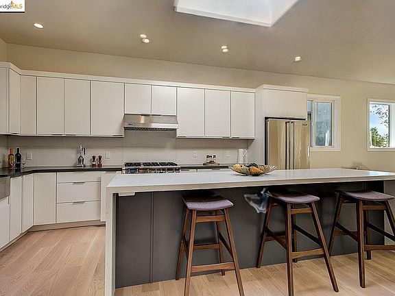 A Stunning New Construction Oasis in the Berkeley Hills boasting with an open floor concept. Live in luxury and style entertaining in a chefs kitchen featuring stylish Diamond Reflection series cabinets soft close drawers, waterfall Italian granite island and counter tops, recessed lighting, high end Viking appliances with a skylight overhead. Nest controlled central heat Porcelanosa Oak hardwood floors throughout, wall of windows, and glass rails that personifies the new rustic modern. 4 bedrooms 4 baths with a variety of Porcelanosa finishes throughout, in a two story brand new construction with a new foundation designed by KLC Engineers, all new systems, dual pane Milgard windows, gorgeous cedar decks and sidings with a spacious terraced backyard. An open Side yard off the laundry room that leads up to a two car tandem parking pad.