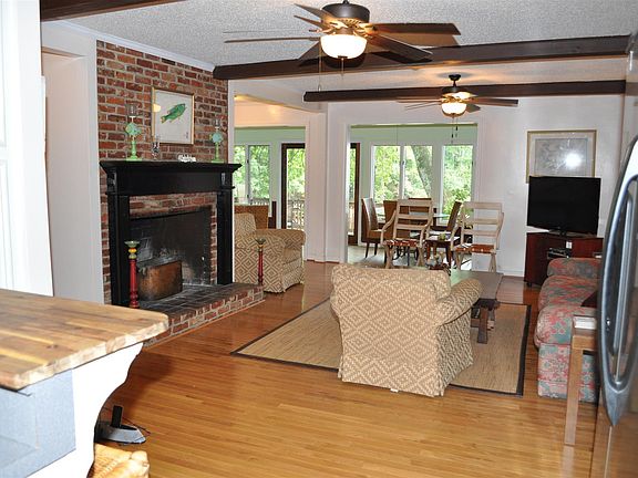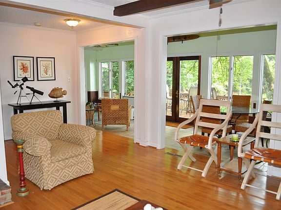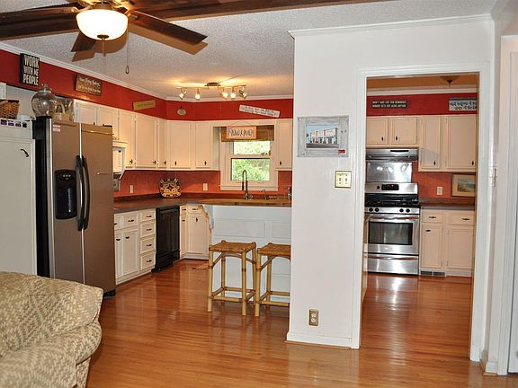 Lakefront. Great view from multi level decks to big water. Floating dock. Open floor plan. Great room with brick fireplace. Comfortable sunroom. Extended garage with workshop space. Fenced. Home warranty