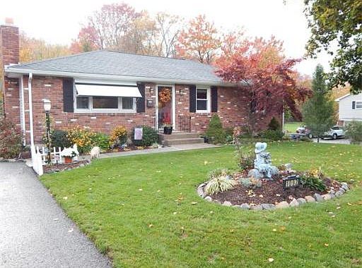 One floor living in this 3 bedroom 1.5 bath ranch! New roof, garage door, windows, driveway, gutters, blown in insulation, drop down attic stairs, basement stairs, hardwood floors in dining room and hall, carpet in office, and doors all throughout. Dining room has a ceiling fan, new picture window, and a fireplace. Recent family room addition w/ large windows, ceiling fan, vaulted ceilings, recessed lighting, hardwood under new carpet, and gas fireplace. Updated kitchen with maple cabinets and ceramic tile floor. New tub surround, ceramic tiles, and granite counter with bronze nickel finish in the bathrooms. The backyard has ample space for use with a large landscaped private yard, 2 sheds, patio with wrought iron railing, and a 3 season porch with additional patio. The house boasts 2 working fireplaces, Double closets in all bedroom with plenty of storage, central vac, vinyl siding, and a top of the line Well McClean water heater. Electrical was updated in 2011.