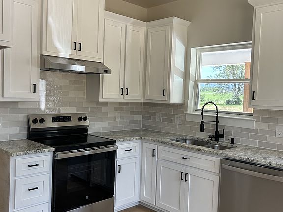 Welcome to your new home! This beautifully constructed 2-bedroom, 2-bath residence offers an ideal blend of modern comfort and charming country living. Nestled on 1.30 acres, this property provides ample space for homesteading, gardening, or enjoying time with your pets. Inside, you'll find a thoughtfully designed 940-square-foot layout that maximizes space and functionality. The kitchen is a chef's delight with custom cabinets, granite countertops, and a stylish tile backsplash. Both bathrooms feature elegant quartz countertops and tile surrounds extending to the ceiling. The home boasts luxury vinyl plank (LVP) flooring throughout, with plush carpet in the bedrooms and closets for added comfort. Additional highlights include a spacious carport, a storage closet, walk-in closets, and a large covered porch perfect for relaxing or entertaining. Located just outside the hustle and bustle of the city, yet close enough for convenient access to town, this home offers the best of both worlds