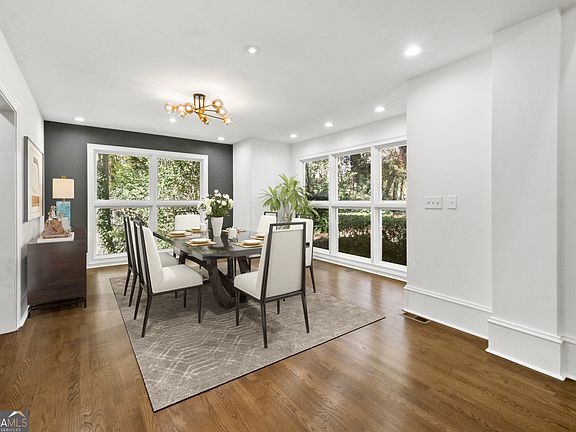 Situated on 1.5 acres within a private cul-de-sac with no HOA, this exceptional residence exemplifies luxury and distinctive design. The open main level features a chef's kitchen with custom cabinetry, natural stone countertops, and a premium suite of appliances, all overlooking the fireside family room with a double-sided fireplace and an adjacent keeping room. The layout is ideal for entertaining, offering a spacious dining area next to the kitchen with expansive windows that enhance the connection between indoor and outdoor spaces while providing abundant natural light. The upper level includes a well-appointed primary suite featuring a cozy fireplace, a private all-seasons room with tranquil views over the landscaped grounds, and a large custom walk-in closet. This house was recently renovated and has a newer roof. The newly renovated, spa-inspired bathroom boasts a striking shower, dual vanities, and a jacuzzi tub. Additional bedrooms are generously sized, with renovated bathrooms. Located in the sought-after Buckhead area, this property offers convenient access to schools, shopping, retail, and major highways. Contact us now to schedule a tour of this amazing home! ( property is virtually staged and was built in 1954 then torn down and rebuilt after)