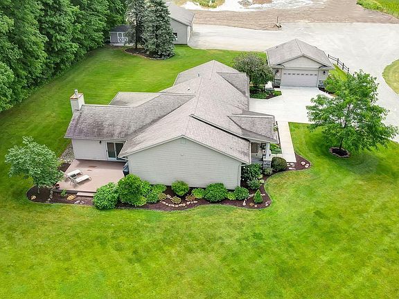 An exceptional 5 acre setting just outside city limits! Down a secluded street with long lane to home and additional acreage. Located only a short commute to downtown life, conveniences and Washington Stem Academy. This charming home exudes pride of ownership from the inside out. Remodeled with new curb appeal, laminate floors, redesigned kitchen, baths and more. As you enter the front door, you are greeted by an open concept floor plan with a spacious kitchen with ample cabinetry, counter space, stainless appliances and new island with breakfast bar that offers views of the pond. Overlooking the centrally located dining room and adjacent great room. The perfect space to unwind or entertain. Enjoy the wooded backyard scenery and natural wildlife activity gathered around the fireplace or just outside on the open deck. The primary bedroom is accessible from the dining area and features a private en-suite with double sink vanity, plenty of storage and a custom tile walk in shower. A split bedroom floor plan allows for additional bedrooms and bath at opposite end of the home. Off the two car attached garage, you'll find the mudroom and separate laundry room. Added storage and parking space is available at the heated detached two car garage plus a 30x40 outbuilding. This heated workshop hosts a spacious work area, mezzanine space and private finished office and bath. Approximately 3.5 acres of open acreage at the back of the property is available for your recreational vehicles or future building plans. Come see all this home and property have to offer. Additional amenities include lawn irrigation, shared pond, zoned agricultural, heated detached garage with cable, heated outbuilding with cable and so much more!