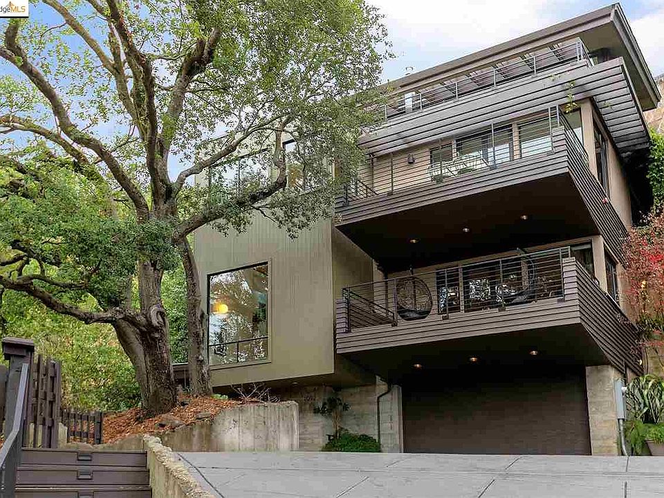 Stylish ten-year old contemporary with elevator, gorgeous living spaces with wonderful outlooks from three large balconies. Two inviting suites and extra bedroom, three full/two half baths. Serious Chef's kitchen/dining with spacious island, Caesarstone Counters and Pasta Arm over professional Thermador. Elegant Living Room with fireplace and built-ins and window seats. Bright Study. Comfortable Media/Family Room. Various accesses to patios and terraced garden. Two-car attached garage. Short distance to Claremont/Rockridge/Elmwood conveniences.