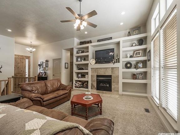 Welcome to this one of a kind custom built home in the highly desired area of Santaquin. This home boasts multiple customized items such as New cooktop and dishwasher, natural slate floors, bedroom locations, upgraded cabinets that role (the kind you won't get with the big builders), built in entertainment center, surround sound throughout the home and back patio, double water heater and complete privacy in the back yard. Some additional items offered are a large RV pad, walkout basement with a spot ready for kitchenette. Both rooms have a laundry room and you will not find a home with more storage. You must walk through the home to appreciate the quality of the home. The seller wants this home to sell "like a new home" so please see the agent remarks.