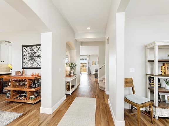 This home has so much to offer. Endless opportunities can be found here to live the Idaho lifestyle. Neighborly front porch invites you in to a really special and thoughtfully planned out home. This home has space for everyone. Gorgeous warm and rich engineered wood flooring throughout. Two master bedrooms. Front office or sitting room. Dining room connected to kitchen through butler's pantry. Entertaining friends and family is a breeze in this beautiful great room that opens onto your large covered back patio. Upstairs you will find a loft study area, two ample sized bedrooms and the second master with a large covered deck to enjoy those beautiful views. Situated on over 1/3 acre lot with easy access to the backyard you may find yourself roasting marshmallows at the fire pit or feeling lucky to be you while relaxing in your hot tub and gazing at your gorgeous mountain view that will never be obstructed.