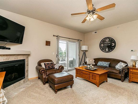 This 2nd floor Condo offers a view of the Blue Top Ridge Championship Golf Course at the Riverside Casino and has a Pond View. Built in 2008, features include: 2 bedrooms, 2 baths, ground level secured entrance with secured garage parking. Living room with gas fireplace open to the kitchen with breakfast bar and pantry. Spacious Deck to enjoy the view and seller added a bar table to the railing for entertaining. Maple Cabinetry in the Kitchen with laminate flooring. All appliances including the washer and dryer remain. Lots of entertainment options at the Casino, Gold Course, Spa, Golf Course and Restaurants. All within a short drive to Iowa City. HOA Dues are $150/month. Quick Possession is available!