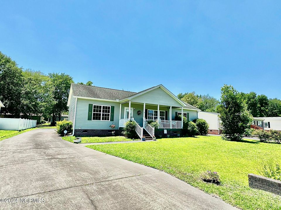 Don't miss this coastal dream home located in a well established community of Village at Calabash. This home boasts a welcoming front porch, large covered back porch and inviting sunroom. A spacious open floor plan offering a bright and airy atmosphere. Kitchen features lot cabinets and counterspace. The primary suite offers a large walk-in closet, and an en-suite bathroom featuring a walk-in shower. Each of the other two bedrooms are spacious and have large closets. This community features a pool, clubhouse, playground and miniature golf course. Call for your private showing today!