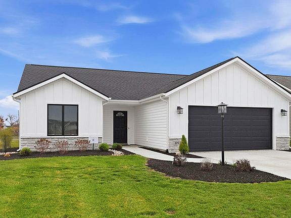 Beautiful home in Bentley Estates with all the details. This ranch home is full of curb appeal with a stone plinth row and board n batten details. The open plan is light and bright with an abundance of luxury vinyl plank flooring. The great room has a cathedral and an electric fireplace with a stone surround. A custom kitchen with painted cabinetry, island, breakfast bar and floating shelves make this space a talking point. Just off the kitchen is the dining nook and then a sunroom with pocket doors. The primary bedroom has a separate entry and also have a larger bathroom and walk in closet. This home is on a stunning pond lot. Other features of this home are a hybrid polymer garage floor, pantry, separate laundry room, Andersen windows and a 96+% two stage gas furnace.