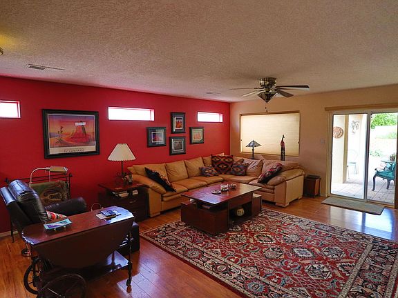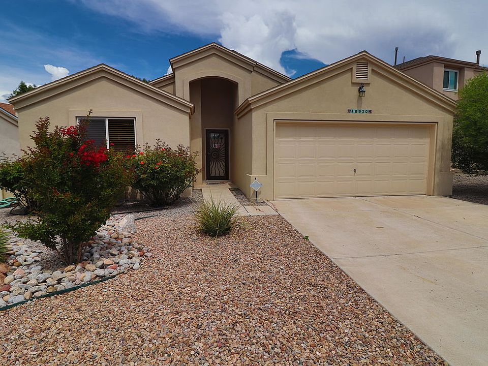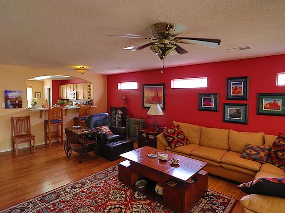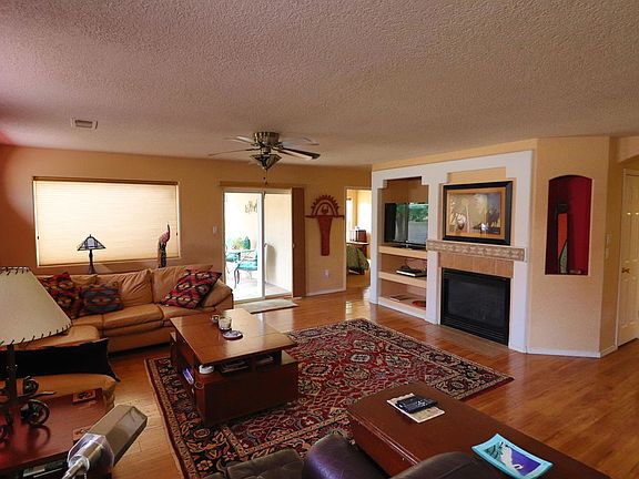 Owned Solar panels provide a credit from PNM every month! One story home with open floor plan. Large fully landscaped backyard with views of Sandia Mts. Master suite is separate from other 2 bedrooms. Great room with gas fireplace & entertainment center as well as access to beautiful backyard and covered patio.
