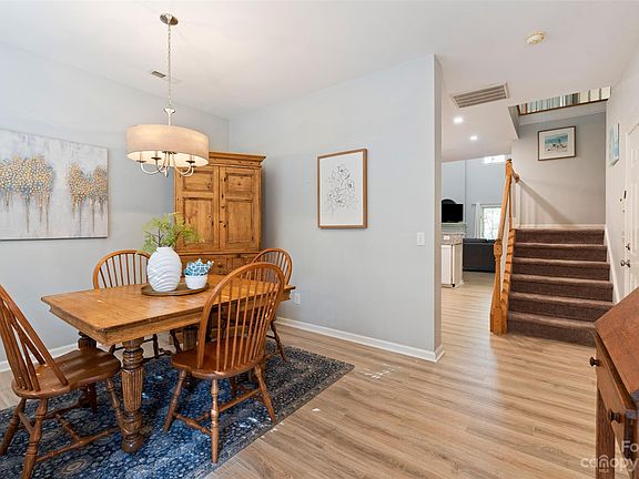 Fantastic townhome walking distance to Ardrey Kell High School. Incredible floorplan with large bedroom on the main with full bath. Upper floor has primary bedroom and secondary bedroom with full bath. Loft space is great for a quiet night of reading or an office space. Kitchen is completely open to the family room and back patio which makes for easy entertaining. Updates throughout - new flooring, updated lighting, 2 updated bathrooms with new vanities/quartz countertops/flooring. The white kitchen is large with granite countertops, large single bowl sink and 2 pantries! 1 car attached garage. This one is hard to come by!