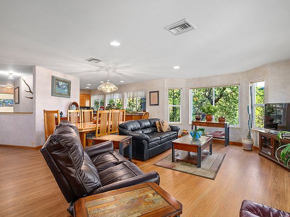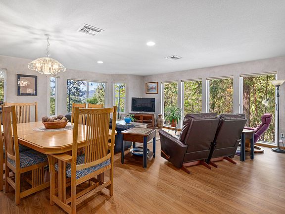 Welcome to 10920 Ramsey Rd.- A private rural property in desirable Sams Valley. Set within the trees on 6.27 acres overlooking 2 spring fed ponds with irrigation. Providing an abundance of privacy, enjoy the quiet and country feel of this exceptionally maintained property and custom home. The 3,190 sq. ft home has a lovely character with a split floor plan. The primary suite is on the main level along with kitchen, family room and sunroom. Downstairs you will find the family room along with additional bedrooms and office. Home sits above the roadway overlooking the mature landscaping and ponds. Additionally, there are fenced garden beds, mature orchard with many fruit tree varieties. Relax around the fire pit amongst the natural landscaping surrounding the home. Barn with modest workshop onsite. The spa is included. The irrigation from the pond maintains the park like setting with a variety of mature oaks and conifers. This land has loads of potential. Call to set up a showing today!