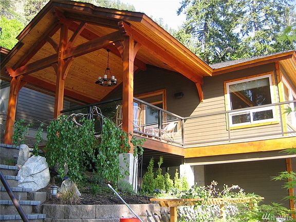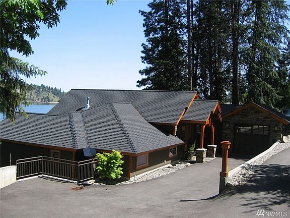 Breathtaking views of the lake greet you as you enter this beautifully crafted custom home located on the southshore of Lake Chelan. Timber frame accents lend a rustic feel. Knotty alder cabinets, pecan floors and extensive wood interiors create a warm and welcoming atmosphere. Fabulous open kitchen with a large granite topped island. Wolf gas range. Covered deck just a step from the kitchen allows for all weather entertaining. 100 feet of concrete bulkhead. Dock and bouy.