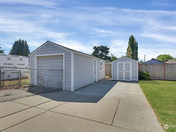 Welcome to this inviting & quaint rambler nestled on a quiet street! Mature landscape encircles the home - fully fenced yard with front & back separation offers privacy & convenience. Plenty of parking, including RV/boat space & detached garage with power. Additionally, enjoy a RV hookup & outbuilding. Step inside & find a freshly painted interior, newly painted kitchen cabinets, new backsplash & vinyl hardwood floors. Stay comfy year-round with window AC units or the wood-burning stove, boasting a brick hearth. This move-in-ready gem, updated in 2015 with a new roof, includes the washer & dryer. Convenient freeway access & close proximity to downtown Puyallup.
