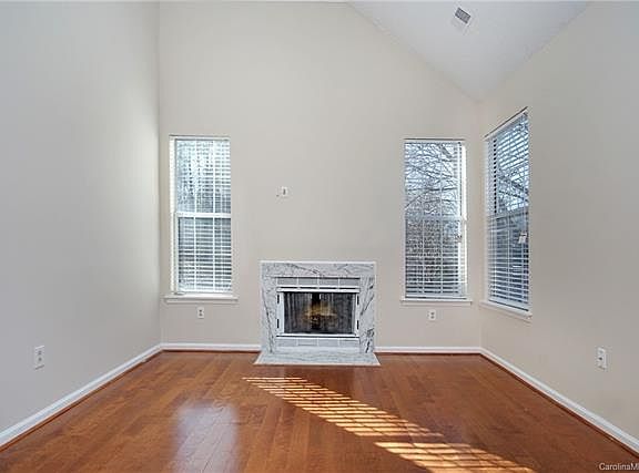 This Charlotte two-story offers a porch, a deck, a fireplace, and a two-car garage. Upgraded features include fresh interior paint and new carpet in select rooms. A community pool and sports courts are part of the HOA. Home comes with a 30-day buyback guarantee. Terms and conditions apply.