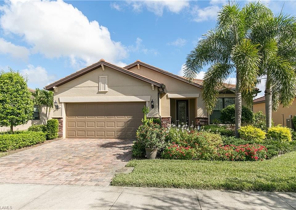 This is a very desirable area near the airport and downtown Fort Myers. You will enjoy this premium lot with an oversize private pool with fountains and travertine tile pavers. The picture window screen overlooks long lake views and manicured landscaping. This beautiful home offers 3bdrm 2 baths a den, and a gourmet kitchen with granite countertops, stainless steel appliances. The interior has crown molding throughout, lovely tray ceilings, upgraded tile flooring throughout the main living area, and upgraded carpeting in the bedrooms. Bridgetown, a premier Pulte community offers numerous amenities including a resort pool, fitness center, outdoor grill, and firepit, bocce and tennis courts-All with low HOA fees!!