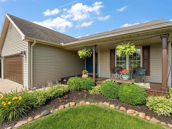 Updated Ranch offers 3 beds and 2 baths sits on 1.3 acres and also includes a NEW 30x40 Pole Barn! The covered porch invites you to the front door, upon entering you will find yourself in the foyer that's open to the large living room which includes vaulted ceilings and a gas fireplace. Entering the kitchen you will notice plenty of cabinets for storage, a pantry, and a large space for your dining table with additional seating at the counter. You will be wowed by the BRAND NEW GRANITE COUNTERTOPS and stainless steel appliances, along with wine fridge! Both baths have recently been updated, bedrooms have new carpet as well. As you make your way outside to the back deck you will also notice the additional paver patio and built in fire pit. The entire yard includes a sprinkler system that runs off its own well, and the beautiful landscaping includes lighting as well. The new pole barn offers additional parking or whatever you need, includes electric and concrete. Home Warranty Included!!