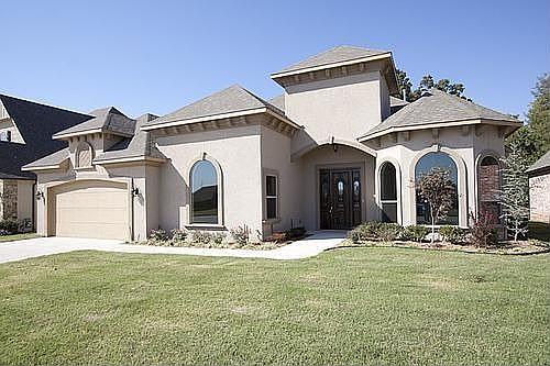 Mediterranean/Tuscan style 1 level.Great floor plan & architectural use of space encompassing 3 bdrms,3 baths,3 car gar,study,liv/din.Split flr plan giving intimate space to all that inside use of windows for natural light.Granite,hardwds,tile.10+' ceils