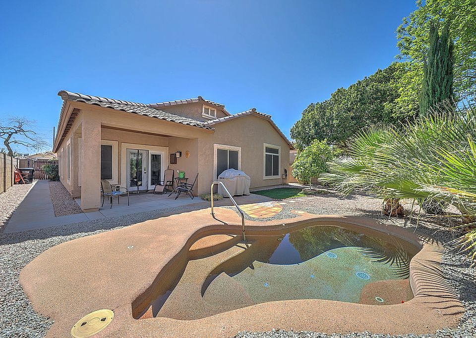 72 Hour Home sale!! Inquire now to bid!! Great Home in Crystal Gardens . Great room Floor plan Offers 3 Bedrooms Plus Den. Eat in kitchen open to the living room features cherry cabinets and smooth top stove. Split Master Bedroom offers Full Bathroom with double sinks, separate shower tub, and walk-in closet. Den with double doors conveniently located off of the living room. You will enjoy your Arizona weather out back with covered patio, sparkling pool and fruit trees!